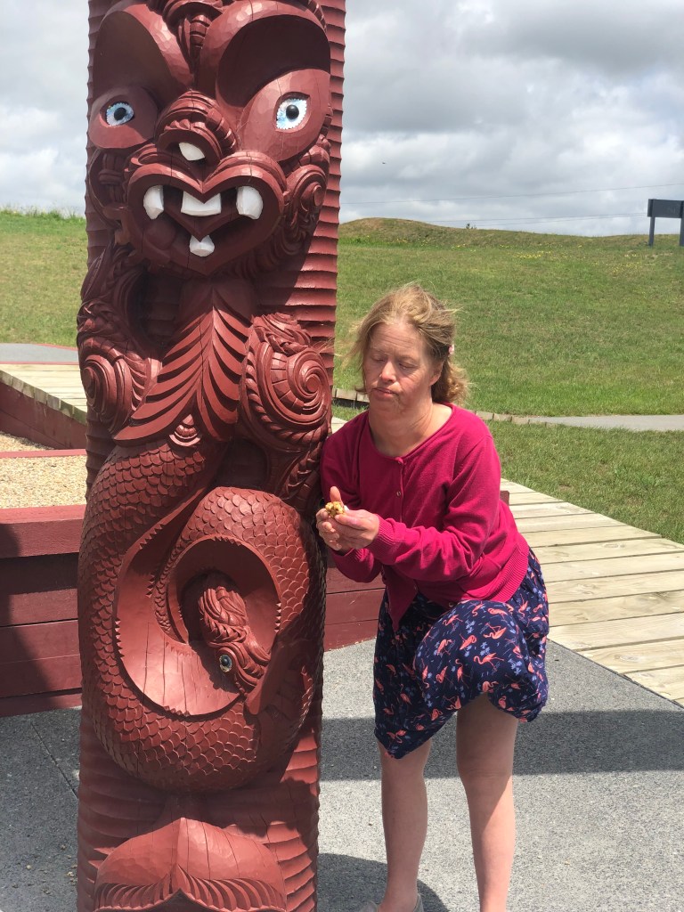 So still giggling about her moment with the surfer hunk we took to the road out of Auckland to Hamilton. Here we enjoyed the gardens which were very wheelchair friendly and better than the google photos portrayed – We all really had a lovely time. We stayed the night but were on the road early to be able to get the glow worms tour and mud baths in one day.