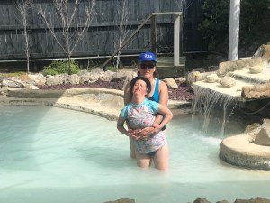 Next we were in the clear clean therapeutic hot water with a water fall – Wendy was in heaven here. The depth was a depth she was comfortable with and we stayed a full hour until we were all wrinkly.